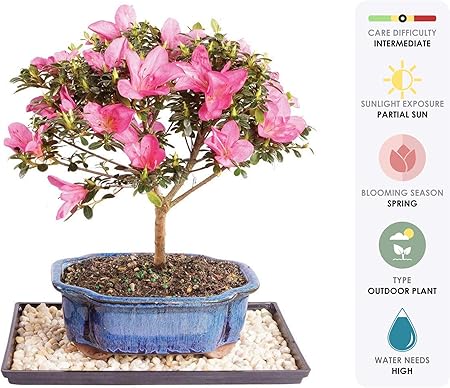 Amazon Com Brussel S Live Satsuki Azalea Outdoor Bonsai Tree In Zen Reflections Pot 4 Years Old 8 To 10 Tall Garden Outdoor