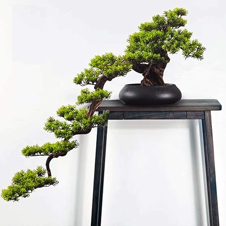 Amazon Com Artificial Bonsai Tree Welcome Bonsai Artificial Cedar Chinese Ceramic Deer Jewelry Porch Office Living Room Tv Cabinet Wrought Iron Home Decorations Artificial Bonsai Simulation Tree Faux Potted Pl Home Kitchen