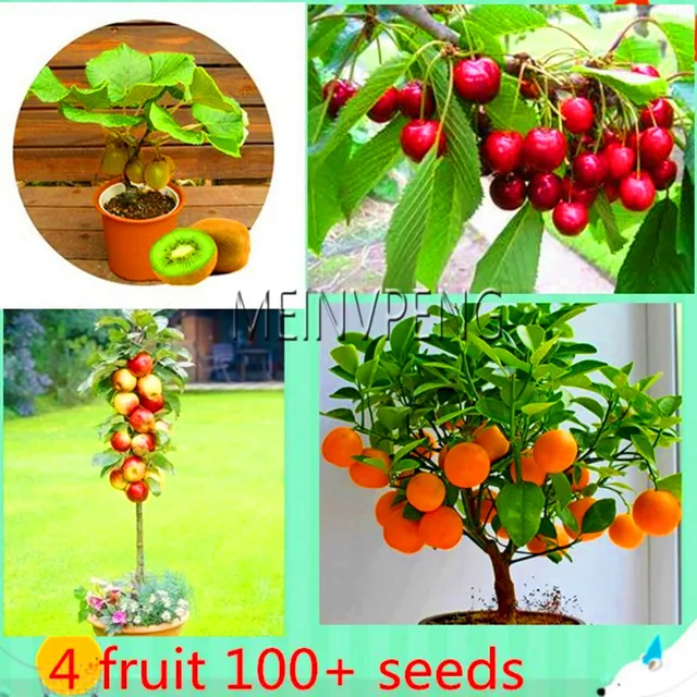 New Arrival 4 Kind Fruit Bonsai Fruit Tree Bonsai Vegetable And Fruit Garden Plant Delicious Apple Orange Kiwi Cherry Total My Now Ministries