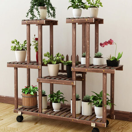 9 Tiers Plant Stand Wooden Bonsai Plant Display Rack Storage Shelf Household Outdoor Indoor Heavy Duty Potted Wish