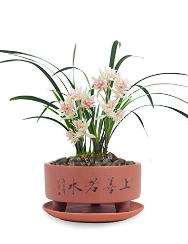 Amazon Com Dahlia 5 2 Top Virtue Is Like Water Zisha Bonsai Planter Flower Pot W Saucer Dark Brown Home Kitchen