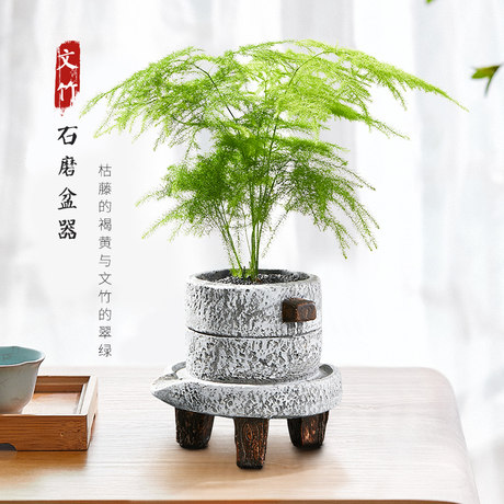 Zile Bay Wenzhu Potted Bonsai Plant Indoor Green Plant Purification Air Office Micro Landscape Flower Potted Plants