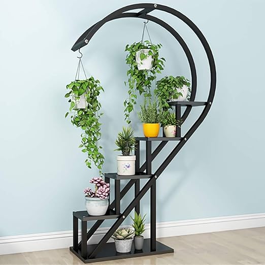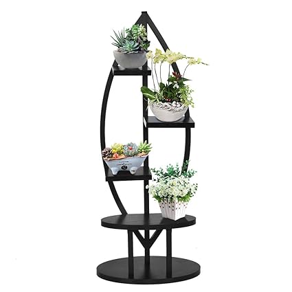 Multipurpose Display Stand For Flowers Books Bonsai Indoor Bonsai Display Shelf For Living Room Bedroom Balcony Office Large Creative Curved Steel Plant Stand Bowlike Black Patio Lawn Garden Pots Planters Container Accessories