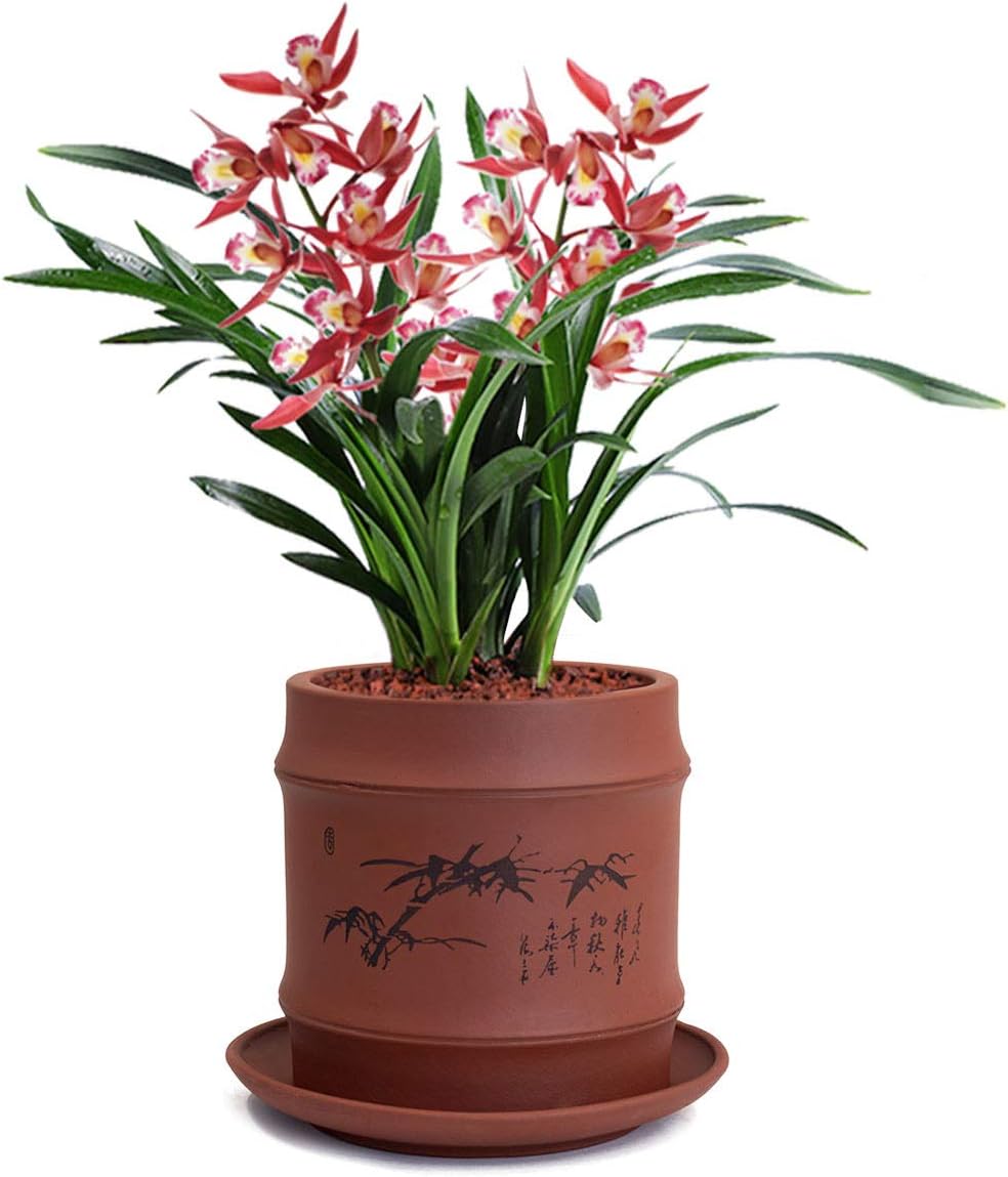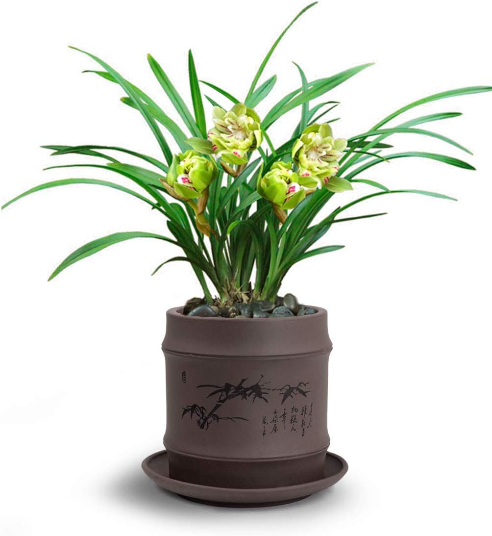 Amazon Com Dahlia 3 8 Bamboo Zisha Cylinder Bonsai Planter Succulent Pot Flower Pot W Saucer Dark Brown Home Kitchen
