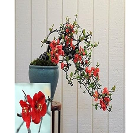 Amazon Com Lou S Bonsai Nursery Red And Pink Flowering Quince Bonsai Tree In Raft Style Bonsai Plants Grocery Gourmet Food